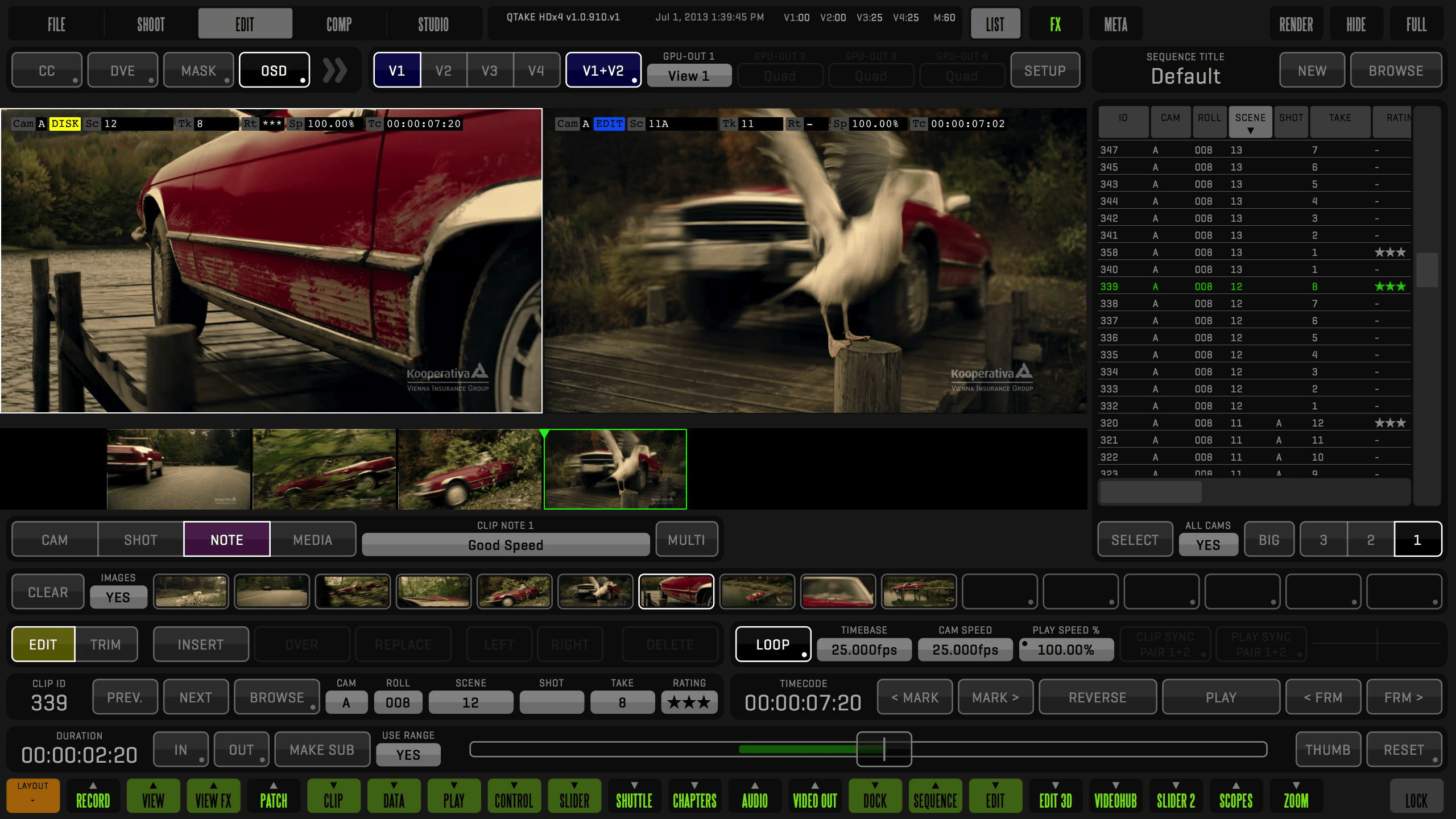 QTAKE is the most advanced software designed and developed for video assist and DIT professionals. It logs, captures, plays, edits, and processes digital cinema camera’s video output and RAW recording. The main purpose of any video assist system is to provide immediate playback for the crew, but QTAKE goes far beyond that. It provides a unique database, customizable to fit any project, real-time image processing up to 8K resolution, multi-camera support, on-set color grading, live editing, and much more.