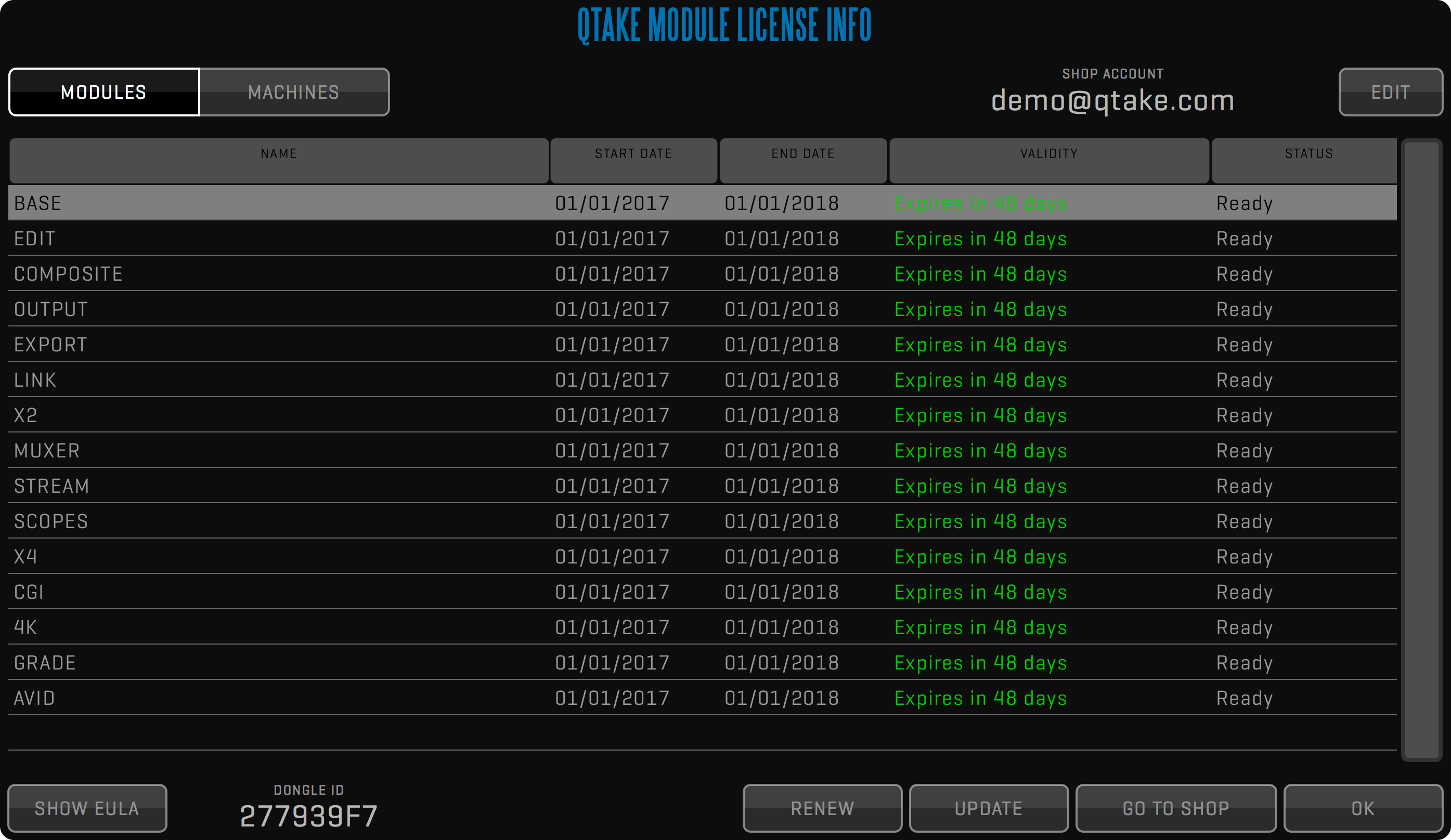 See QTAKE Live Modules and Common Modules sections to see what licenses are available for QTAKE Live.