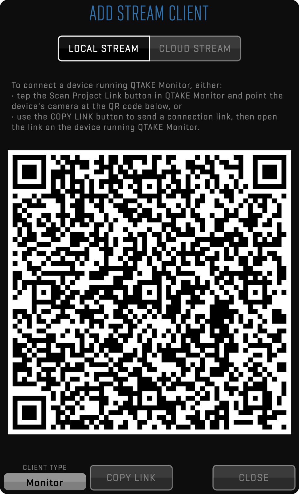 QTAKE Monitor 4.2.19 or later for iOS/macOS 10.15 or newer. QTAKE Server 2.2.2 build 2029 or later.