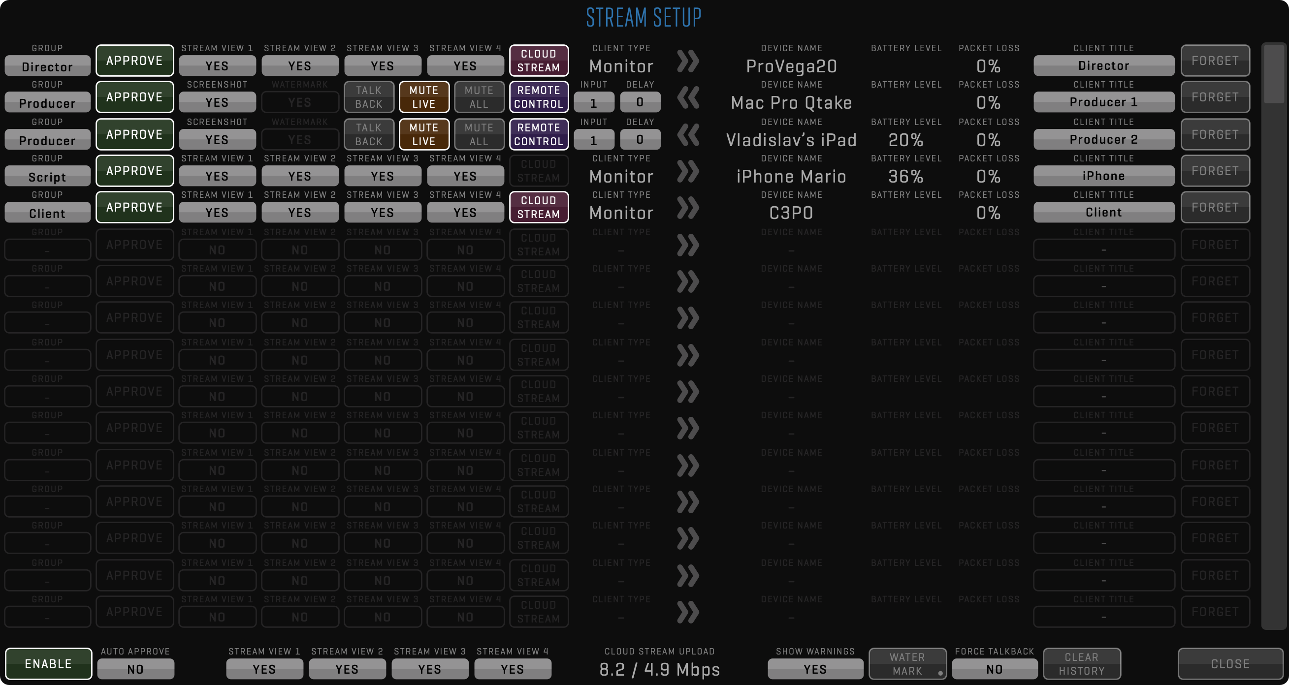Most of the new functionality in QTAKE version 1.6 is dedicated to streaming. QTAKE Stream was designed specifically for professional filmmakers and gained worldwide praise for its ultra-low latency, frame-based metadata support, and studio-grade security. Now we are taking it to a new level with the following features: