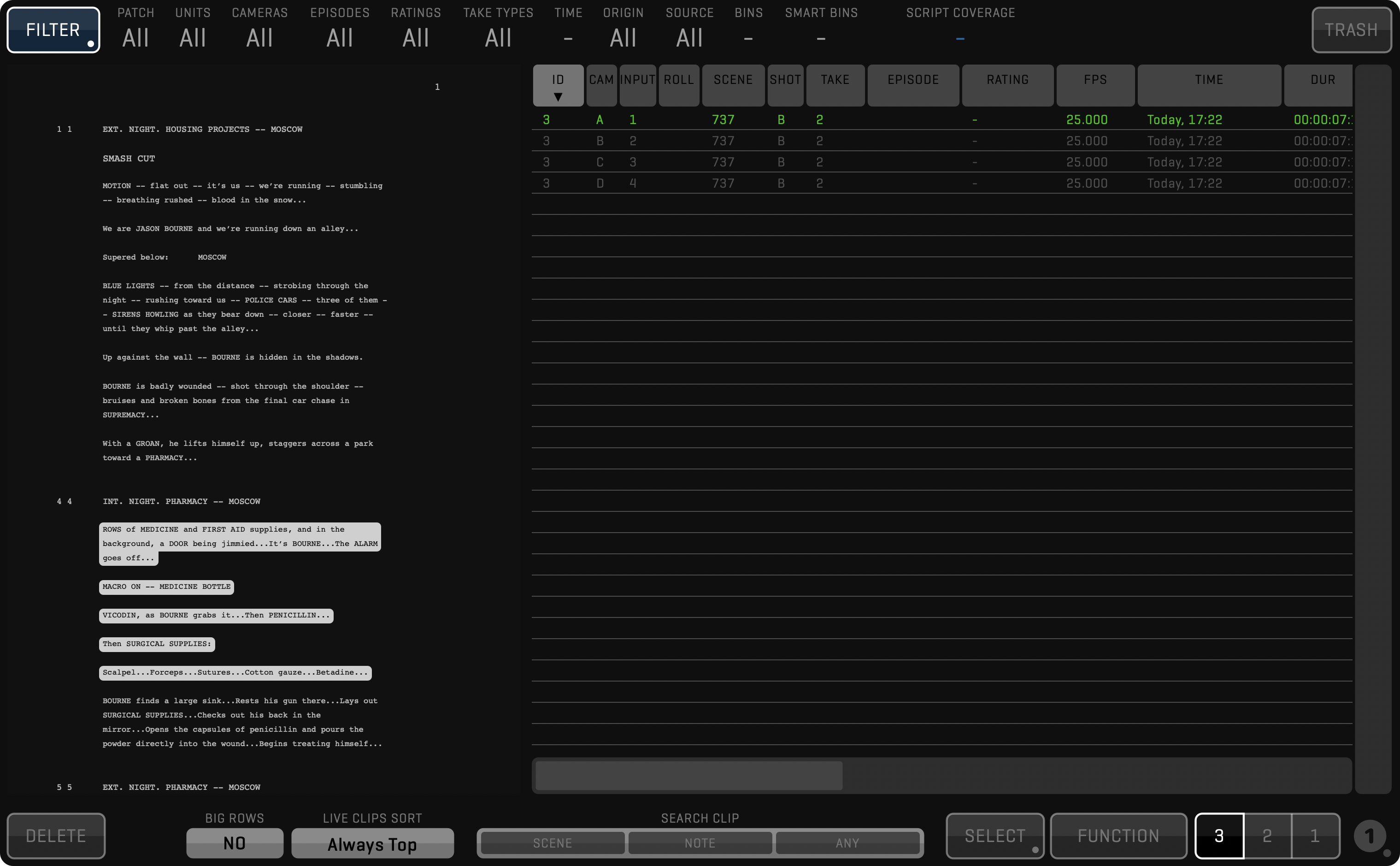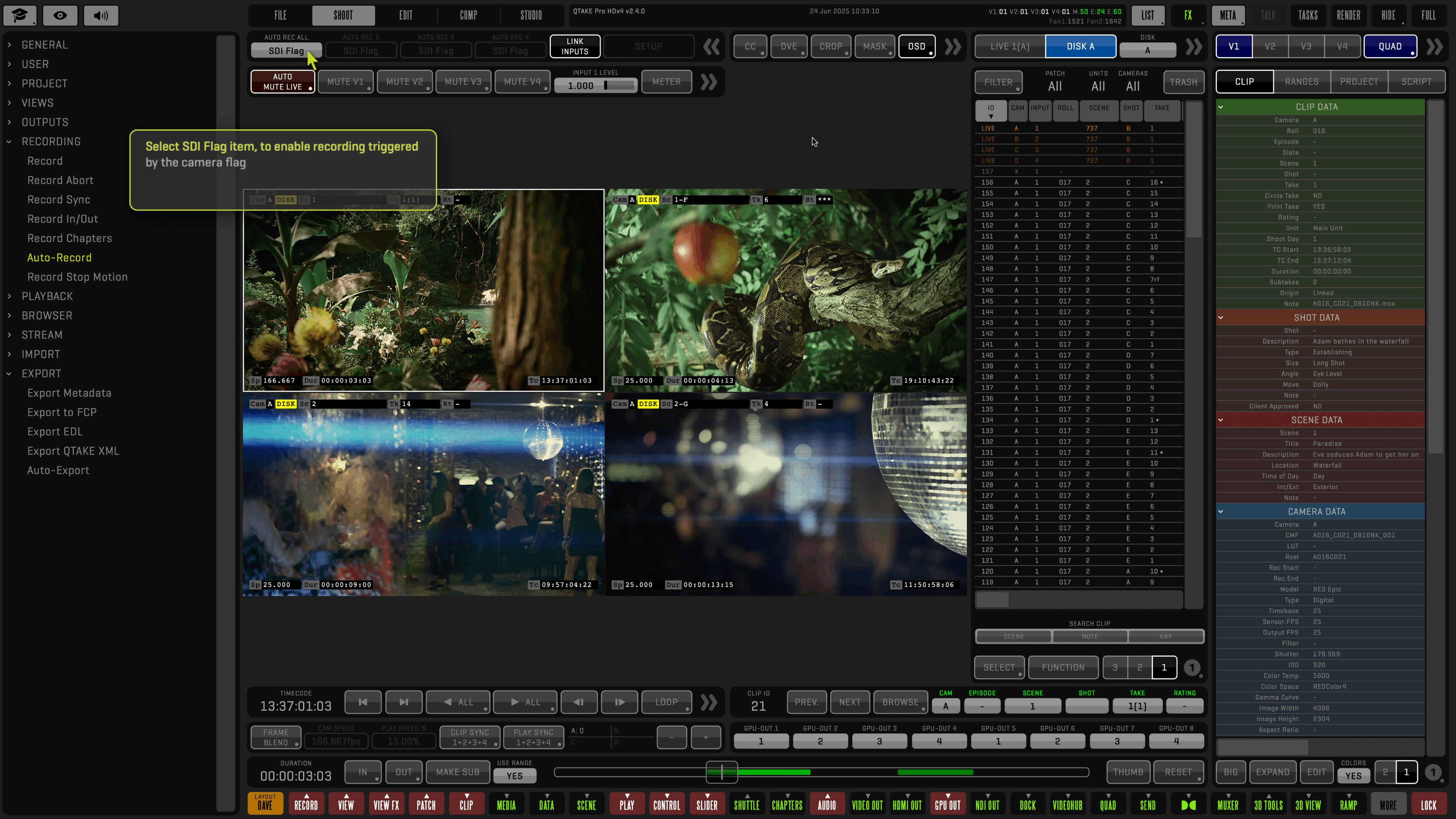 QTAKE Pro is the most advanced software designed and developed for video assist and DIT professionals. It logs, captures, plays, edits, and processes digital cinema camera’s video output and RAW recording. The main purpose of any video assist system is to provide immediate playback for the crew, but QTAKE Pro goes far beyond that. It provides a unique database, customizable to fit any project, real-time image processing up to 8K resolution, multi-camera support, on-set color grading, live editing, and much more.