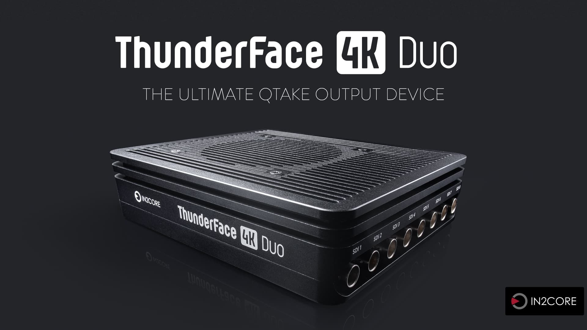 ThunderFace 4K Duo, the successor of QOD+, is the ultimate hardware device developed by IN2CORE to provide a superior solution for GPU-driven low-latency video output from QTAKE.